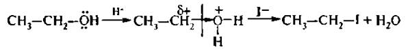 б) Расщепление под действием кислот (ацидолиз). Простые эфиры разлагаются концентрированной йодоводородной кислотой уже на холоду с образованием алкилйодида и спирта.