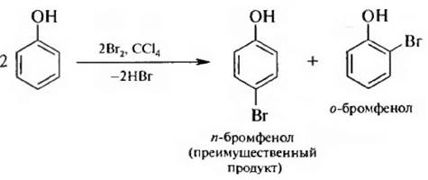 Эта реакция используется для качественного и количественного определения фенола. Для введения одного или двух атомов брома в бензольное кольцо реакцию бронирования проводят в низкополярных растворителях (CCl4, CHCl3)