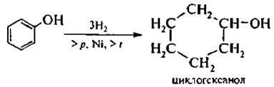 При каталитическом гидрировании (восстановлении) фенола образуется циклогексанол: