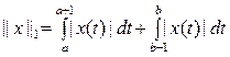 таң дап алсақ, онда x(t)Î C[a, b], ||x||1=0 болады. Бірақ, x(t)¹ 0. Олай болса, норманың бірінші шарты, яғ ни ||x||1=0 Þ x(t)=0 орындалмайды. Онда, C[a, b] кең істігінде 20. Мұ нда да интеграл астындағ ы функция модулмен берілгендіктен, кез келген ү зіліссіз x(t) функциясы ү шін ||x||2³ 0 болады. Егер Мұ нда интеграл астындағ ы функция оң таң балы жә не ү зіліссіз болғ андық тан | x(t) | =0 болады. Бұ дан x(t)=0 екені шығ ады жә не x(t)=0 функциясы ү шін ||x||2=0 екені айқ ын. Бірінші аксиома толық орындалады. Айталық, кез-келген