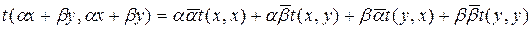 Егер ті х бойынша жә не у бойынша функционал болса, мұ нда t - ө зі тү йіндес оператор, онда біз деп белгілейтін осы функционал келесі шарттарды қ анағ аттандыратын кө ру қ иын емес: