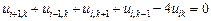 Бұ л Осылайша (3, 1), (3, 2), (3, 3) тораптарда ақ ырлы-айырымдық тең деулерді жазудың қ ажеті жоқ. Қ алғ ан ішкі (1, 1), (2, 1), (1, 2), (2, 2), (1, 3), (2, 3) тораптарда сә йкес алты тең деуді аламыз: