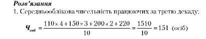 Приклад. Підприємство працює з 21 квітня. Облікова чисельність тих, хто працює на новому підприємстві, становила: 21 квітня – 110 осіб; 25 квітня – 150, 28 квітня – 200, 30 квітня – 220 осіб. Середньооблікова чисельність працівників у травні становила 280 осіб, у червні – 290 осіб. Визначити середньооблікову чисельність працівників за третю декаду квітня, за квітень, за II квартал.