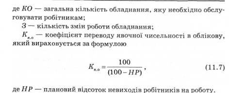 Планова чисельність основних робітників за нормами обслуговування визначається за формулою