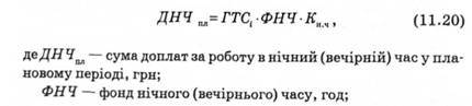 Для визначення суми доплат за роботу в нічний (вечірній) час, необхідно знати розмір доплат, середню тарифну ставку робітників і фонд нічного (вечірнього) часу: