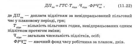 Оплата праці підлітків за скорочений робочий день здійснюється як за повний робочий день робітників відповідних категорій. Розмір цих доплат залежить від кількості підлітків, кількості пільгових годин і робочих днів у плановому періоді, їх середньої годинної заробітної плати: