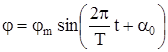 где jm - амплитуда угла поворота; t - время колебаний; Т - период колебаний; a0 - начальная фаза. Угловую скорость w платформы П найдем дифференцированием j по времени: