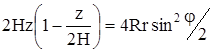 При малых углах отклонения j, т.е. при выполнении условия z< < H,
