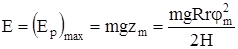 В момент отклонения платформы П на максимальный угол jm она поднимается на максимальную высоту zm от положения равновесия, а кинетическая энергия равна 0. Энергия колебаний Е равна максимальной потенциальной энергии: