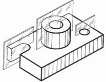 3 сурет Эскиз арқ ылы деталь бө лігін қ ию. Сызбаның кө рнекілігін арттыру мақ сатында тек бір жазық тық емес бірнеше жазық тық ты қ олдануғ а болады. Ол жазық тық тарды базалық жазық тық қ а параллель жә не оны симметриялы тү рде оске бағ ыттайды. Нә тижесінде қ ұ рылымының ішкі жә не сыртқ ы бө лігін кө рсететін деталь бө лігі қ иылады (4 сурет). Жазық тық бірнеше жазық тық тан қ ұ ралғ ан болса қ иық кү рделі деп аталады. Егер жазық тық тар бір-біріне параллель бірінен кейін бірі сатылап орналасса оны сатылы деп атаймыз. (5 сурет) Егер жазық тық тар бір-біріне қ андайда бұ рышпен орналасса онда кү рделі сынғ ан деп аталады. (6 сурет) Деталь бө лігін осы жолдармен қ ию ү шін детальдың эскизін қ ұ рып алуымыз қ ажет.