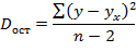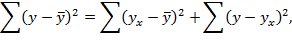 После выбора уравнения линейной регрессии и оценки его параметров проводится оценка статистической значимости как уравнения в целом, так и отдельных его параметров. Оценка значимости уравнения регрессии в целом осуществляется с помощью критерия Фишера, который называют также F-критерием. При этом выдвигается нулевая гипотеза (Н0): коэффициент регрессии равен нулю (b = 0), следовательно, фактор х не оказывает влияния на результат у и линия регрессии параллельна оси абсцисс. Перед тем как приступить к расчету критерия Фишера, проведем анализ дисперсии. Общую сумму квадратов отклонений у от