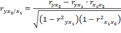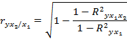 При дополнительном включении в модель фактора xi частный коэффициент корреляции рассчитывается по формуле: