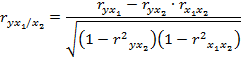 Эти коэффициенты являются частными коэффициентами корреляции первого порядка, так как они фиксируют тecноту связи фактора и результата при постоянном воздействии одного фактора. Для расчета коэффициентов частной корреляции могут быть использованы парные коэффициенты корреляции. Для двухфакторной модели коэффициенты частной корреляции первого порядка вычисляются следующим образом: