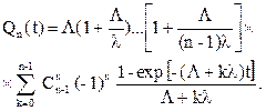 lк = L + (n – k)l (4.30) Рассматриваемый процесс является частным случаем процесса гибели, рассматриваемого теорией массового обслуживания, и мы можем применить все формулы этого процесса. Из представлений теории массового обслуживания ненадежность резервной группы будет равна