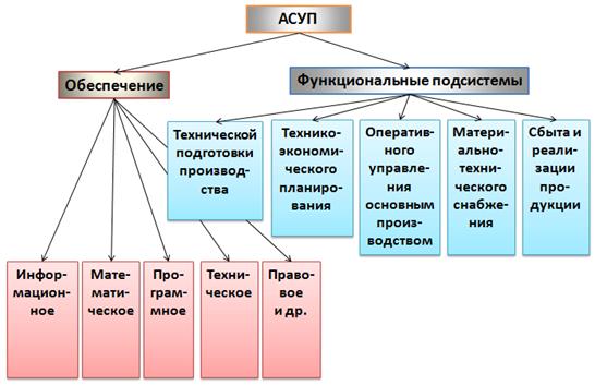 Подробно описывать эти подсистемы здесь не представляется целесообразным. Отметим, что функциональные подсистемы состоят из комплексов задач, которые характеризуются определенным экономическим содержанием и достижением конкретной цели. В комплексе задач используются различные первичные документы и составляются выходные документы на основе взаимосвязанных алгоритмов расчетов, которые базируются на методических материалах, нормативных документах, инструкциях и т. п. Рассматривая АИС как информационную автоматизированную систему управления предприятием (АСУП) можно, например, представить ее структуру в виде, изображенном на рис. 1.4.