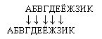 Повысить криптостойкость позволяют многоалфавитные шифры замены (или шифры многозначной замены). При этом каждому символу открытого алфавита ставят в соответствие не один, а несколько символов шифровки. Ниже приведен фрагмент многоалфавитного ключа замены.