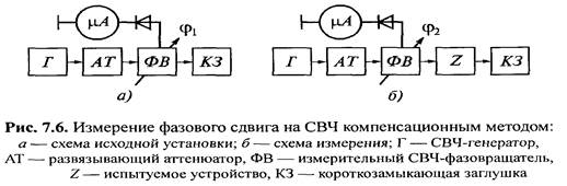 Рассмотрим один из способов, реализующих компенсационный (нулевой) метод измерений, который является разновидностью метода сравнения. Его сущность состоит в сравнении измеряемого фазового сдвига с известным фазовым сдвигом, создаваемым мерой — образцовым фазовращателем.