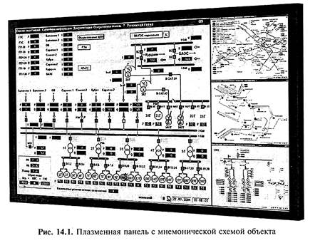 Создание и эксплуатация современных машин и сооружений, контроль параметров технологических процессов требуют организации измерений большого числа различных физических величин, собираемых множеством датчиков. Решение таких задач традиционными способами — подключением к каждой контролируемой точке индивидуального измерительного прибора (ИП) — просто невозможно уже хотя бы потому, что из-за большого количества приборов оператор не в состоянии следить за их показаниями. Подобного рода трудности возникают и при небольшом числе первичных ИП в случае контроля быстропротекающих процессов. Между тем в задачах такого рода измерительная информация, поступающая от первичных ИП, должна быть собрана, обработана и в удобной форме представлена оператору. Передача информации осуществляется либо непосредственно через каналы связи (при небольших дистанциях или специально выделенных каналах связи), либо через устройства телемеханики (на большие расстояния). Передача сигналов от многих источников в одно место достигается при помощи устройств централизованного контроля. К средствам представления информации относятся показывающие стрелочные, цифровые, символьные и др. индикаторы, самопишущие приборы, печатающие устройства и графопостроители. Для лучшего восприятия широко применяется метод визуального контроля с помощью промышленного телевидения, мнемонических схем (рис. 14.1).