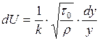 где Приняв допущения Прандтля о линейной связи между длиной пути перемешивания l и расстоянием от стенки у, т. е.