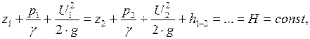 где – геометрическая высота центра тяжести сечения над плоскостью ; пьезометрическая высота; скоростная высота.