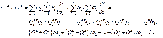 Подставим это выражение в формулу виртуальной работы i -ой активной силы и просуммируем эти работы по всем точкам системы. Получим