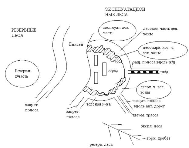 Рис. Пример выделения защитных лесов по категориям