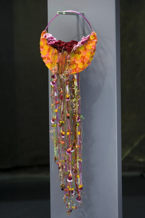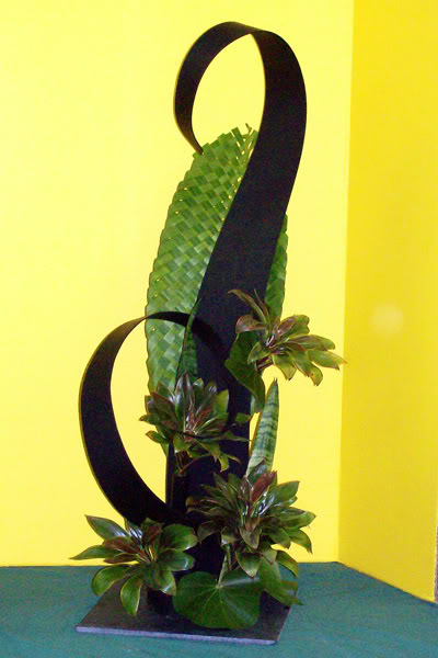 4. Смешанная техника. Работа выполняется в нескольких техниках, например живые и искусственные стебли, + плетение. Эта техника применяется в том случае, когда нужно сделать работу со сложными очертаниями или ниспадающими выбросами.