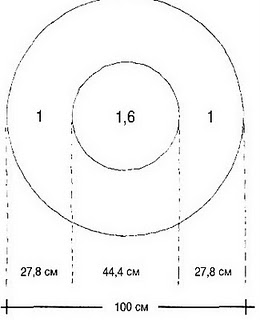 Возможно и такое соотношение: 2, 5 части — тело венка; 3 части — отверстие; 2, 5 части — тело венка; всего — 8 частей.