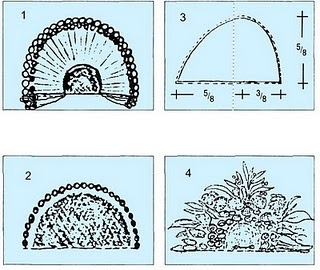 Форма венка - круг. Профиль же его тела может быть разным. Следует помнить, что венок может получится траурным или праздничным от выбранных пропорций, то есть от отношения диаметра венка к диаметру отверстия. Т.е. при маленьком отверстии, в пропорциях от 1, 6 до 1 части, - венок получается траурным по смыслу.