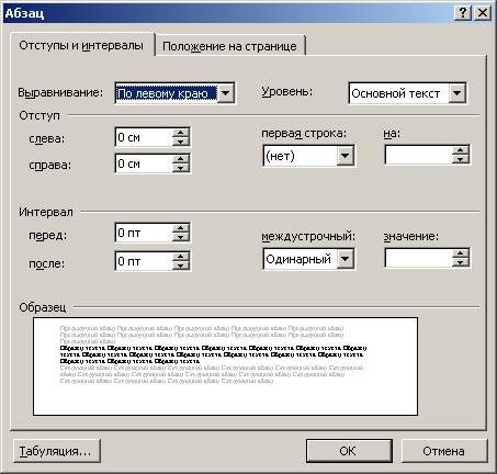 - Выберите в меню пункт «Абзац». Появится меню «Абзац» (см. Рис. 8)