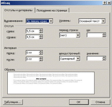 - Если вы форматируете блок «Ремарка», то меню «Абзац» должно выглядеть следующим образом: Слева – 5, 5 см, Справа – 4, 5 см, Остальное без изменений. (см. Рис. 11)