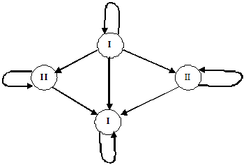 Рассмотрим другой пример графа, изображенного на рис.3. Этот пример относится к медицине. Известно, что у разных людей кровь отличается по группе. Существуют четыре группы крови. Оказывается, что при переливании крови от одного человека к другому не все группы совместимы. Граф на рис.3 показывает возможные варианты переливания крови. Группы крови – это вершины графа с соответствующими номерами, а стрелки указывают на возможность переливания одной группы крови человеку с другой группой крови. Например, из этого графа видно, что кровь 1-й группы можно переливать любому человеку, а человек с первой группой крови воспринимает только кровь своей группы. Видно также, что человеку с 4-й группой крови можно переливать любую, но его собственную кровь можно переливать только в ту же группу. Связи между вершинами данного графа несимметричны и поэтому изображаются направленными линиями со стрелками. Такие линии принято называть дугами (в отличие от ребер неориентированных графов). Граф с такими свойствами называется ориентированным. Линия, выходящая и входящая в одну и ту же вершину, называется петлей. На рис.3 присутствуют четыре таких петли. Нетрудно понять преимущества изображения системы переливания крови в виде графа по сравнению с вербальным (т.е. словесным) описанием тех же самых правил. Граф на рис.3 легко воспринимается и запоминается. Одним из классов ориентированных графов являются блок-схемы алгоритмов. В блок-схемах используются вершины разных типов, обозначающие разные команды: прямоугольник – команда присваивания; ромб – команда выбора пути продолжения алгоритма по результату проверки условия; параллелограмм – команда ввода или команда вывода; овал – начало или конец исполнения алгоритма. Здесь тоже можно говорить о пути прохождения графа в ходе выполнения алгоритма. Любой путь начинается от вершины начала и заканчивается выходом на вершину конца. Внутри же путь может быть разным в зависимости от исходных данных.