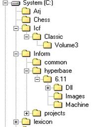 Другой пример – система хранения файлов на магнитных дисках. Корнем этого дерева является корневой каталог диска, вершины – подкаталоги разных уровней. Как известно, путь к файлу – это путь от корневого каталога до каталога, непосредственно содержащего данный файл. И для каждого файла такой путь единственный. Например, путь к файлам, содержащимся в каталоге Images на рис.6, описывается так: \Inform\hyperbase\6.11\Images При поиске информации в дереве перемещение по нему может происходить только вверх или вниз (на уровень выше или на уровень ниже). Нельзя осуществить прямой переход между вершинами одного уровня. Еще одним примером иерархической структуры является система доменных адресов в Интернете. Вот фрагмент этой системы, представленный в виде дерева.