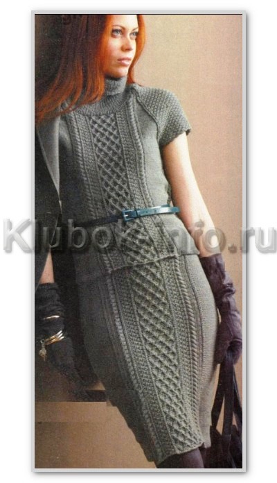 Вам потребуется: 350 (400; 450) г пряжи SMC Select EXTRA SOFT MERINO (100% мериносовая шерсть; 50 г/130 м) № 05119 орехового цвета для пуловера и 300 (350; 350) г для юбки; спицы № 3.5; круговые спицы № 3, 5; вспом. спица. Резинка 1/1: попеременно 1 лиц., 1 изн. Лицевая гладь: лиц. р. - лиц. п., изн. р. - изн. п. Изнаночная гладь: лиц. р. - изн. п., изн. р. - лиц. п. Жемчужный узор: 1-й р.: 2 лиц. п., 2 изн. п.; 2, 4-й р.: вязать по рисунку; 3-й р.: 2 изн. п., 2 лиц. п.; Повторять 1 - 4-й р. Узор «жгуты»: вязать по схеме, где даны только лиц. р., в изн. р. все п. вязать по рисунку. Повт. 1-12-й р. Плотность вязания: 10 х 10 см = 24 п. х 36 р. изн. гладь, 10 х 10 см = 24 п. х 40 р. жемчужного узора, 18 см = 54 п. узора «жгуты». ПУЛОВЕР Спинка: набрать 96 (108; 122) п. и вязать изн. ряд изн. петлями, продолжить жемчужным узором до высоты 32 см. Для формирования реглана закрыть 5 (7; 9) п. в начале след. 2 р. Убавить 1 п. по краям в каждом 4-м р. 10 (6; 0) раз, затем поочередно в каждом 2-м и 4-м р. 10 (18; 29) раз. Провязать 1 п. после и перед кром. п. лиц. гладью и делать убавления след. образом: кром. п., снять 1 п. лиц., 1 лиц. п., протянуть провязанную п. через снятую п.; на последних 3 п., 2 п. вязать вместе лиц., кром. п. Продолжить вязание жемчужным узором до высоты спинки 50 (52; 54) см, закрыть оставшиеся 46 п. горловины спинки. Перед: набрать 106 (118; 132) п. и вязать изн. р. изн. п., затем распределить п. след. образом: кром. п., 25 (31; 38) п. изн. гладью, 54 п. жемчужным узором, 25 (31; 38) п. изн. гладью, кром. п. На высоте переда 32 см для формирования пройм закрыть 5 (7; 9) п. в начале след. 2 р. Убавить 1 п. по краям поочередно в каждом 2-м и 4-м р. 20 (22; 20) раз и в каждом 2-м р. 0 (2; 9) раз. Делать убавления так же, как для спинки и вязать 1 п. после и перед кром. п. лиц. гладью. Одновременно на высоте 44 (46; 48) см начинать формировать вырез горловины след. образом: вязать до центральных 22 п., нитью от другого мотка закрыть центральные 22 п., и вязать до конца р., далее вязать обе половины отдельно. Закрыть от центра 3 п. 1 раз, 2 п. 2 раза и 1 п. 6 раз. Довязав до линии плеч, закрыть оставшиеся 4 п. Рукав: набрать 70 (86; 100) п. и вязать изн. р. изн. п., продолжить жемчужным узором 3 (4; 5) см. Окат выполнить аналогично пройме спинки, закрыть оставшиеся 20 (24; 24) п. Второй рукав вязать так же. Сборка: вшить рукава. Выполнить швы рукавов и боковые швы. Воротник: на круговые спицы набрать 124 (130; 130) п. по вырезу горловины и вязать лиц. приемом. Продолжить вязание круговыми р. 18 см резинкой 1 x 1, затем свободно закрыть все п. ЮБКА Примечание: начинать вязание сверху. Задняя деталь: набрать 90 (98; 106) п. и вязать 10 см резинкой 1 x 1, закончив лиц. р. Провязать изн. п. след. изн. р., равномерно прибавить 18 (20; 22) п. по всему р. = 108 (118; 128) п. Далее вязать след. образом: кром. п., 24 (29: 34) п. изн. глади, 58 п. узором «жгуты», 24 (29; 34) п. изн. глади, кром. п. На высоте 60 см закрыть все п. Передняя деталь: вязать так же, как заднюю. Сборка: выполнить боковые швы. По материалам журнала " Felice"