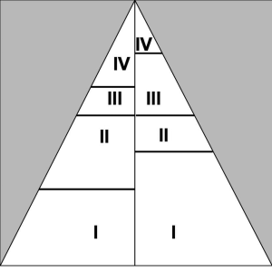 Нельзя сказать, что выхода из этой ситуации не было, ведь в психологии существует множество методов терапии подобных расстройств. Но для терапии нужно время, а когда его нет, то кажется, что человеку ничего уже не поможет. В жизни так чаще всего и бывает, годами люди ходят как по лезвию бритвы, истощая свою нервную систему и своих близких. Тем не менее я хочу указать на способ быстрого исправления ситуации, известный с давних времен представителям народной профессии под названием сваха. Свахи были, по сути, сводницами, они знакомили людей, которые, по их мнению, подходят друг другу. Тем самым свахи составляли такие пары, в которых супруги могли жить со своими недостатками без дополнительных усилий со своей стороны. Это означало, что один супруг должен был обладать такими качествами, которых не хватало другому. И часто такие браки продолжались всю оставшуюся жизнь, ведь недостатки уже не мешали человеку быть семейным, но только в сочетании с конкретным партнером. Продолжая тему Пирамиды Стабильности, мы можем рассматривать возможность уравновешивания своей ситуации за счет пирамиды своего партнера. То есть некоторые перекосы в балансе энергий мы можем компенсировать энергией своего партнера. Думаю, нужно особо отметить, что один партнер не может бесконечно дополнять другого. Это означает, что одну пирамиду должна уравновешивать другая, если чего-то не хватает нам, мы получим от своего партнера. Но для гармонии в составе пары мы и сами должны дополнять пирамиду своего партнера. В таком сочетании энергий и при доверительных отношениях между партнерами можно говорить о возможности составить Парную Пирамиду Стабильности. Это будет уже другая ситуация относительно каждого отдельно взятого человека в отрыве от ситуации отношений. Если один партнер уравновешивает другого, то возникает зависимость от такого союза. Зато есть существенная польза в том, что менять в себе что-то нет необходимости. Изначально в отношениях мужчины и женщины это предполагалось, и в каком-то смысле роли до сих пор условно разделены между супругами. Но все чаще случается так, что один из супругов берет на себя больше обязанностей, чем это нужно для равновесия. В таком случае получается перекос внутри парной пирамиды, и поэтому браки распадаются все чаще.
