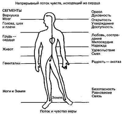 Рис. 18. Чувство веры — это ощущение жизни, которая течет по телу от одного конца к другому, от центра к периферии и обратно. Когда нет блоков или сжатий, нарушающих или искажающих поток, человек ощущает себя как единство, как целостность. Разные аспекты его личности объединены в единое целое, а не диссоциированы друг от друга. Он не является человеком, чья духовность противостоит его сексуальности или чьи сексуальные влечения в субботу вечером сменяются духовными чувствами в воскресенье утром. Он не из тех, кто говорит одно, а делает другое. Его сексуальность есть выражение его духовности, потому что она выражает акт его любви. Его духовность имеет земное свойство, ибо он чтит сам дух жизни, который проявляется во всех земных созданиях. Он не тот человек, чей дух доминирует над телом, как и не тот, чье тело лишено духа. Но не менее важным является его чувство целостности. Он вышел из прошлого, существует в настоящем, но одновременно принадлежит и будущему. Эта последняя мысль может показаться странной тем, кто придерживается столь популярного в наше время мнения о том, что важно только то, что происходит здесь и сейчас. Однако я придерживаюсь другой мысли, что жизнь — это непрерывно продолжающийся процесс постоянного раскрытия возможностей и потенциалов, которые кроются в настоящем. Но без какой-либо надежды и привязанности к будущему человеческая жизнь застыла бы в своем развитии, как это происходит с людьми, находящимися в депрессии. С биологической точки зрения каждый организм привязан к будущему через зародышевые клетки, которые он содержит в своем теле. Чувство целостности носит также горизонтальный характер. Мы связаны энергетически и метаболически со всеми живыми существами на земле, начиная от земляных червей, вентилирующих почву, и заканчивая животными, обеспечивающими нашу повседневную пищу. Ощущение этой взаимосвязи и действие в соответствии с ней — вот что является отличительными чертами человека веры, человека, который обладает верой в жизнь. Его вера так же сильна, как и его жизнь, потому что она (вера) служит выражением внутренней жизненной силы. Людей с подлинной верой отличает качество, которое мы все легко узнаем. Это грация. Человек веры грациозен в своих движениях, потому что его жизненная сила течет легко и свободно через его тело. Его манеры также грациозны, потому что он не озабочен своим эго или интеллектом, своим социальным статусом или властью. Он един со своим телом, а через него — со всей жизнью, со Вселенной. Его дух горит, сверкая внутренним пламенем жизни. В его сердце есть место для каждого ребенка, ибо каждый ребенок — это его будущее. Но он также чтит стариков, ибо они являются источником его существования и основой для его мудрости. * Персонаж рассказа Джеймса Тербера, который, спасаясь от серых будней, в своих грезах воображал себя героем, — прим. [1] Lowen Alexander. Pleasure: A Creative Approach to Life. N.Y., 1970. [2] Feniche Otto. The Psychoanalytic Theory of Neurosis. N.Y., 1945. [3] Durchheim Karlfried. Наrа, the Vital Centre of Man. London, 1962. * Освобождение от напряжения, — прим. * Спонтанно возникающие неприятные ощущения онемения или покалывания, — прим. [4] Lowen Alexander. The Betrayal of the Body. N.Y., 1968. [5] Klein Melanie. Mourning and It's Relation to Manic-Depressive States, The International Journal of Psychoanalysis, Vol. 21, part 2, 1946. [6] VcKinney W. F., Sisuomi Jr. S. J. and Harlow H. F. «Studies in Depression», Psychology Today (may, 1971), p. 62. [7] Lowen Alexander. Pleasure: A Creative Approach to Life. N.Y., 1970. [8] Bowlb J. Chil