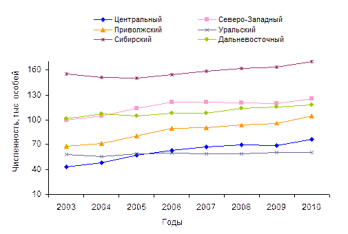 В Московской области на положительную динамику численности пока еще не оказывает влияние усиливающийся отрицательный фактор антропогенного характера, связанный с интенсивным дачным строительством на месте вырубок в центре лесных массивов. Уменьшение кормовой базы и увеличение фактора беспокойства, в дальнейшем, может негативно сказаться на состоянии популяции лося. Отрицательная динамика зафиксирована учетными данными лишь в Костромской области. Тем не менее, полученный в 2010 г. показатель не вышел за пределы среднемноголетней численности, находящейся на уровне 8, 0-9, 0 тыс. особей. В целом по округу годовой прирост численности составил 10%. Росту численности лося способствовали благоприятные погодные условия, высокий уровень охраны угодий, осуществляемой в закрепленных охотничьих хозяйствах. По запасам лося Северо-Западный федеральный округ находится на втором месте в России после Сибирского федерального округа. Во всех регионах округа, за исключением Калининградской области, численность установлена по результатам ЗМУ. В Калининградской области, расположенной вне зоны проведения ЗМУ, численность определена экспертно на уровне 0, 55 тыс. особей. Наиболее высокие показатели численности лося отмечены в Республике Карелия – 17, 4 тыс. особей, Архангельской области – 29, 3 тыс. особей, Вологодской области – 28, 26 тыс. особей, Ленинградской области - 11, 8 тыс. особей. Увеличение численности зарегистрировано во всех субъектах округа, за исключением Псковской области. В Псковской области снижение численности связано с уменьшением учетной площади, из-за исключения из расчетов площади ООПТ федерального значения. Численность лося в целом по округу в 2010 г. составила более 125, 23 тыс. особей, что несколько выше прошлогодних показателей. В Южном федеральном округе лосиобитают на территорииВолгоградской и Ростовской областей. Оценки численностилося в этих регионахпредставляют сведения, полученные по данным учета методом прогона на пробных площадках и экспертных оценок региональных специалистов. Современная численность лося в этих субъектах РФ находится на низком уровне, соответствующей середине 90-х годов прошлого века, когда на юге России наблюдалось повсеместное сокращение численности лося. В настоящее время численность в Волгоградской области находится в пределах 900-1000 особей, в Ростовской области – на уровне 150-200 особей. Численность лося в Краснодарском и Ставропольском краях также в середине 90-х годов прошлого столетия претерпела резкое сокращение до уровня, не превышающего несколько десятков особей в каждом регионе. В настоящее время лось в этих субъектах не регистрируется. В целом численность лося по Южному федеральному округу в 2010 г. оценивается на уровне 1, 0-1, 3 тыс. особей. В Приволжском федеральном округе в большинстве регионов округа численность определяется по результатам ЗМУ. Учетные данные фиксируют рост численности лося практически во всех регионах округа. В Пермском крае численность выросла по сравнению с прошлым годом на 5% и составила 23, 87 тыс. особей. В Кировской области за последние два года численность увеличилась с 21, 89 тыс. особей до 23, 09 тыс. особей. Суммарный запас лося по этим двум регионам составляет примерно половину от общего запаса, сосредоточенного в округе. Несмотря на наблюдающийся рост поголовья