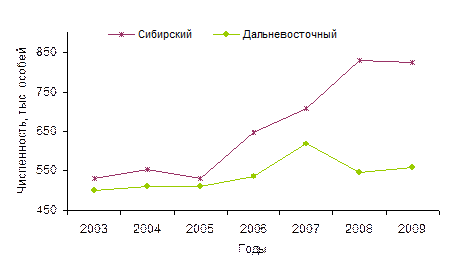 Дальневосточный федеральный округ. Численность соболей на предпромысловый период за последние два сезона на территории округа оценивалась на уровне 500-600 тыс. особей. По официальным данным в сезон охоты 2009-2010 гг. был добыт 132941 соболь, что соответствует 23, 4 % от имеющихся ресурсов на предпромысловый период. В целом по России ресурсы соболя по официальным данным использовались в охотничьи сезоны 2007-2008 гг. – 2009-2010 гг. в размере 17, 1–19, 7 % от предпромысловой численности.