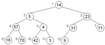 3) если последовательность (1) – пирамида и представлена в виде бинарного дерева B, то значение любого узла в B будет не меньше значений его левого и правого потомков.