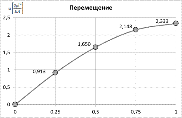Рис.2 Изменение перемещения по длине стержня (точное решение)