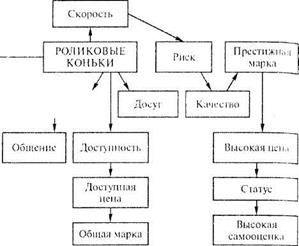 Ассоциативная сеть может отражать реальное или желаемое состояние, т.е. быть фактической или целевой. Сила взаимосвязей понятий в сети может отражаться шириной, или толщиной, линии соединения. Толстые линии отражают сильную ассоциацию, тонкие — слабую ассоциацию. Одной из маркетинговых задач может быть изменение ассоциативной сети — в составе звеньев и силе связей между ними. На рис. 8.12 показан вариант ассоциативной сети для газеты деловой и политической элиты «Коммерсанть». Следует помнить, что каждый сегмент рынка имеет свою ассоциативную сеть. Так, например, свойства «высокое качество» и «престижность марки» могут привлекать один сегмент рынка и одновременно отпугивать другой сегмент, чувствительный к цене.