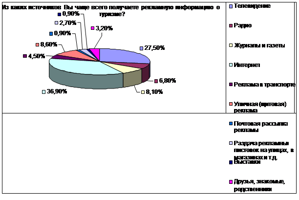 Так как целевая аудитория молодая, информация поступает через 2 основных канала коммуникации: Интернет (36, 9%) и телевидение (27, 5%). Именно с помощью этих каналов можно провести наиболее эффективное продвижение товара.