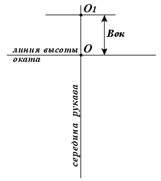 Рис. 10 иллюстрирует основные линии чертежа - отрезок ОО1 равен высоте оката Вок, окружность через т. О соответствует линии высоты оката и показывает ширину рукава Шрук, а отрезок О1Н равен длине рукава Друк.