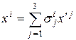 Если теперь начало координат останется на месте, а базисные вектора преобразуются с помощью суммы, то координаты векторов