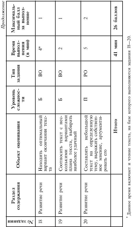 Номера верных ответов на задания с выбором ответа, верные ответы на задания с кратким ответом, описание полных и частично верных ответов на задания с развернутым ответом приведены в «Рекомендациях по проверке и оценке выполнения заданий итоговой работы», которые даются к «Демонстрационному варианту итоговой работы по русскому языку для 4 класса». Оценка выполнения проверочной работы в целом осуществляется в несколько этапов в зависимости от целей оценивания. 1. Определяется балл, полученный учеником за выполнение заданий базового уровня. 2. Определяется балл, полученный учеником за выполнение заданий повышенного уровня. Выполнение этих заданий свидетельствует о том, что кроме усвоения необходимых для продолжения обучения в основной школе знаний, умений, навыков и способов работы, обучение повлияло и на общее развитие учащегося. 3. Определяется общий балл учащегося. Максимальный балл за выполнение всей работы — 26 баллов (за задания базового уровня сложности — 14 баллов, повышенной сложности — 12 баллов). Если ученик получает за выполнение всей работы 8 баллов и менее, то он имеет недостаточную предметную подготовку по русскому языку. Если ученик получает от 9 до 16 баллов, то его подготовка соответствует требованиям стандарта, ученик способен применять знания для решения учебно-познавательных и учебно-практических задач. При получении более 16 баллов (16—26 баллов) учащийся демонстрирует способность выполнять по русскому языку задания повышенного уровня сложности. Демонстрационный вариант итоговой работы по русскому языку для 4 класса