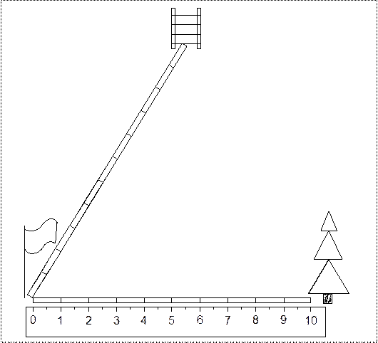 1. Вожатая дала четвероклассникам план спортивной площадки. Она попросила отметить на нём расположение мишени и доски, соблюдая следующие условия: – мишень надо расположить в пяти метрах от лестницы; – доску надо расположить более чем в шести метрах от лестницы, между флагом и елью, но ближе к ели. Отметь на плане место расположения мишени знаком М, а доски для записи результатов – знаком Д.
