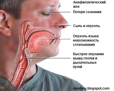 Жалобы пациентов: внезапно наступившую слабость, чувство стеснения в груди, головокружение, головную боль, ощущение жара во всем теле, снижение зрения, слуха, кожный зуд, позывы на стул и мочеиспускание, тошноту, рвоту, боли в животе. Объективно: холодный пот, расширенные зрачки, судороги, пена у рта, цианоз или резкая гиперемия(бледность бывает крайне редко), непроизвольный акт мочеиспускания и дефекации, могут быть зудящие высыпания на коже, пульс частый, нитевидный, низкое АД, или не определяется (рис.5). В тяжелых случаях сразу возникают симптомы коллапса: холодные конечности, пульс не прощупывается, АД не определяется, может сочетаться с потерей сознания(в таких случаях через несколько минут может наступит смерть). Кроме описанных вариантов развития анафилактического шока, возможно развитие не менее тяжелой картины через 20 - 40 минут после инъекции. Особая опасность развития такого варианта анафилактического шока состоит в том, что в этом временном промежутке самочувствие больного остается хорошим, больной не находится под контролем медицинского персонала и возможность оказания современной помощи уменьшена.