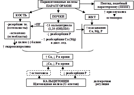 Рис. 12. Гормональная регуляция кальций-фосфорно-магниевого обмена
