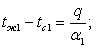 Рассмотрим процесс теплопередачи через однородную плоскую стенку толщиной δ (рис. 12.1). Заданы: коэффициент теплопроводности стенки λ, температуры окружающей среды tж1 и tж2, коэффициенты теплоотдачи α 1 и α 2. Необходимо найти тепловой поток от горячей жидкости к холодной и температуры на поверхностях стенки tс1 и tс2. Плотность теплового потока от горячей среды к стенке определится уравнением (9.14)