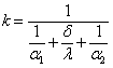 Величина k называется коэффициентом теплопередачи, который выражает количество теплоты, проходящее через единицу поверхности стенки в единицу времени при разности температур между горячей холодной и горячей жидкостью, равной 1К (размерность Вт/(м2·К)). Величина обратная коэффициенту теплопередачи, называется полным термическим сопротивлением теплопередачи
